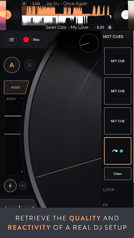 Mixfader dj mengemulasi kelakuan vinil sebenar dan bunyi menjadikan untuk pengalaman menggaru terbaik.