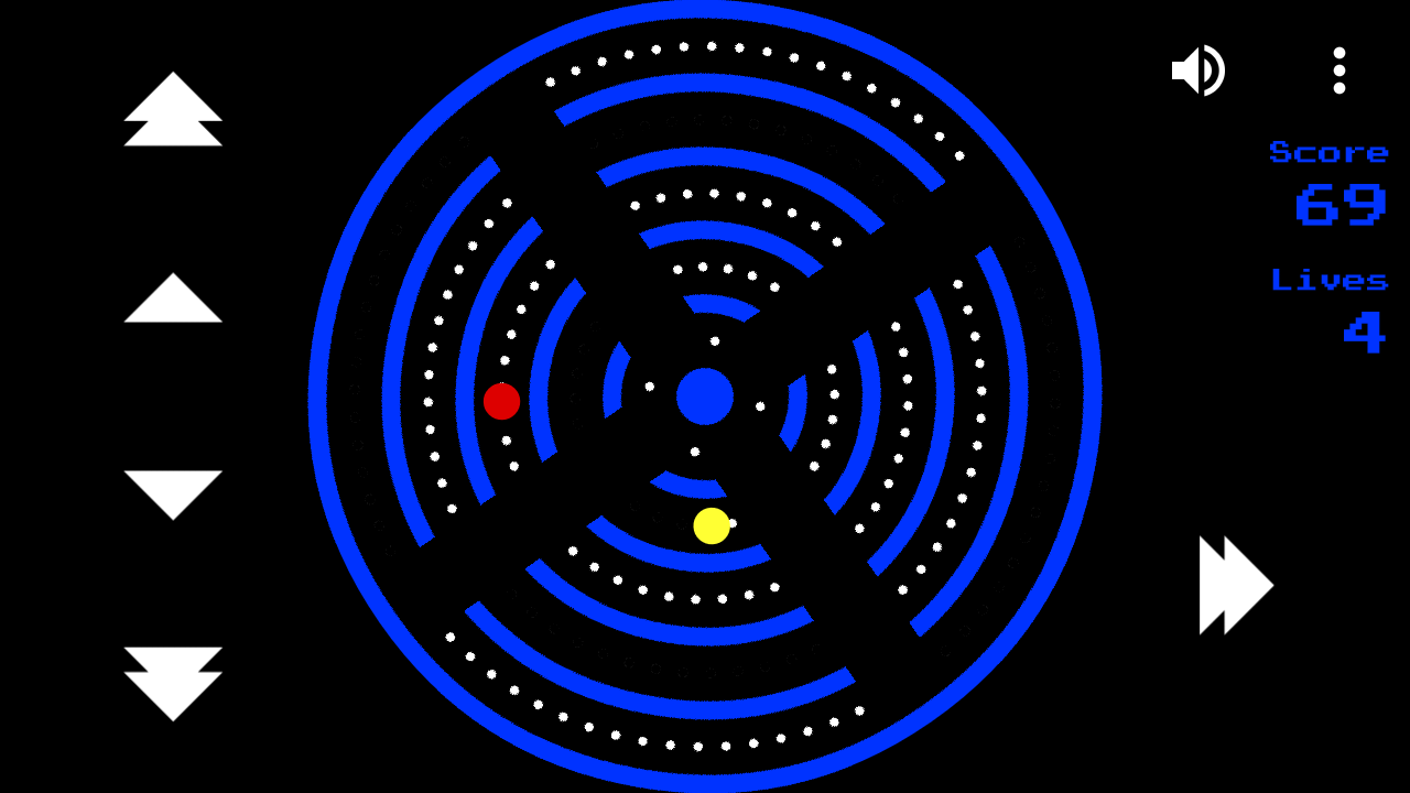 MMMunch is a collect-the-dots retro arcade game where you steer in and out to collect dots and dodge enemies. As you proceed through the levels the enemy starting positions change and more enemies get added. At high levels game speed increases, think fast!