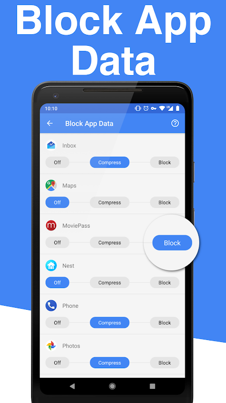 Take control of your mobile data, COMPRESS internet traffic, and BLOCK apps!