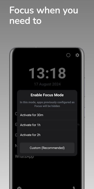 Beralih kepada telefon yang minimalis dan bebas gangguan: pantau masa yang dihabiskan untuk setiap apl, sekat apl yang membuang masa, tetapkan masa penggunaan maksimum, konfigurasikan peringatan untuk apl yang memikat hati anda dan banyak lagi.