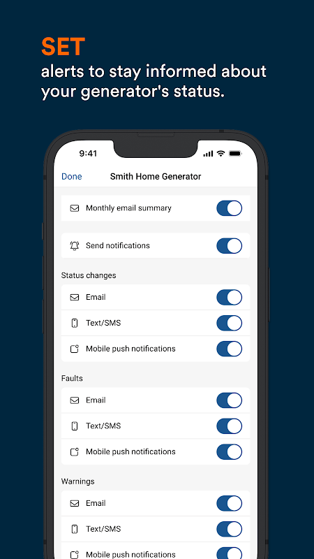 Pantau Status Masa Nyata: Lihat dengan serta-merta status operasi semasa penjana anda dan keperluan penyelenggaraan yang akan datang.