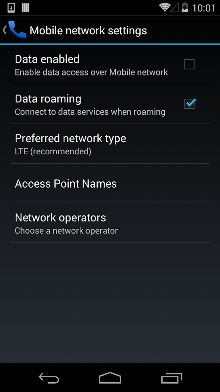 Ini adalah jalan pintas untuk skrin tetapan rangkaian mudah alih yang membolehkan anda untuk menetapkan pilihan untuk data paket, perayauan, APN, dan lain-lain