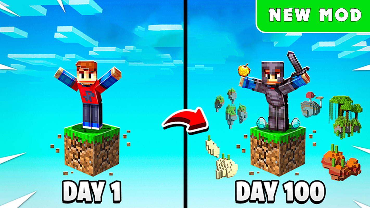 One Block Survival untuk Minecraft PE - peta survival, dalam addon ini anda perlu bertahan pada 1 blok dengan mob dan kulit baharu, kami juga mengesyorkan anda mencuba alat tambah, mod, peta dan kulit kami yang lain dengan peta lucu untuk minecraft!