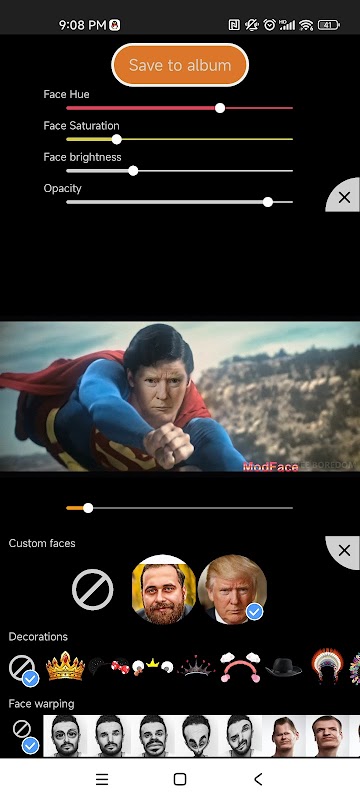Sekarang coba ModFace, gunakan untuk menempelkan wajah Anda ke SIAPA PUN yang Anda sukai: bintang film, selebritas, artis, atau bahkan teman Anda! Atau rekatkan wajah APAPUN seperti wajah selebritas atau teman Anda ke video selfie Anda! Anda dapat melihat diri Anda di film, video yang sedang tren, teman Anda' video, atau lihat teman Anda, bintang film dengan tubuh Anda!