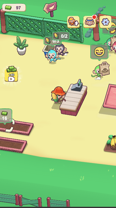Mekanik permainan Monkey Mart menggabungkan elemen simulasi, strategi dan pengurusan masa. Tugas anda termasuk menanam tanaman yang berbeza, seperti pisang, nanas dan kelapa, untuk menyimpan stok di rak kedai. Tanam benih, siram tumbuhan, dan lihat ia berkembang di bawah jagaan anda. Tuai hasil masak dan susun dengan cantik untuk dipamerkan.