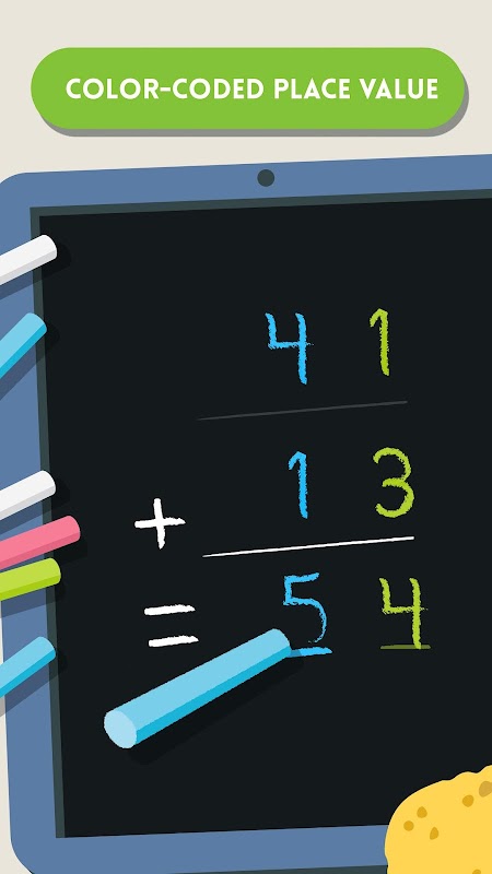 Set in a very bright and colorful environment, this free app offers addition games and proposes subtraction, multiplication and division as In App Purchases.