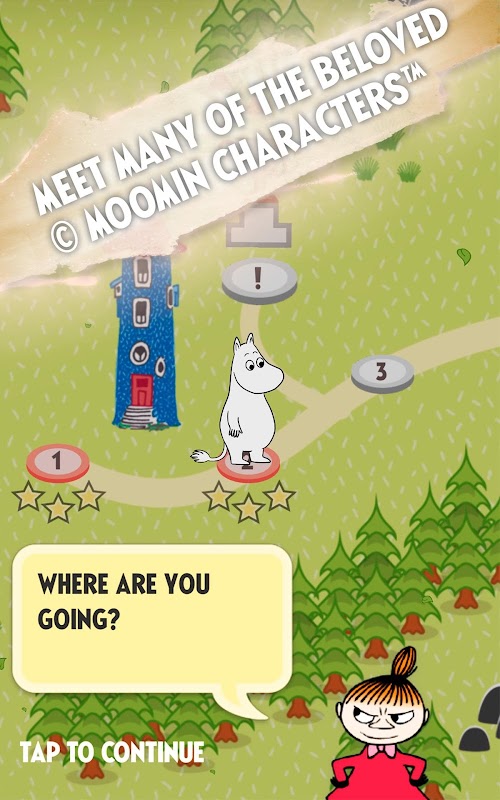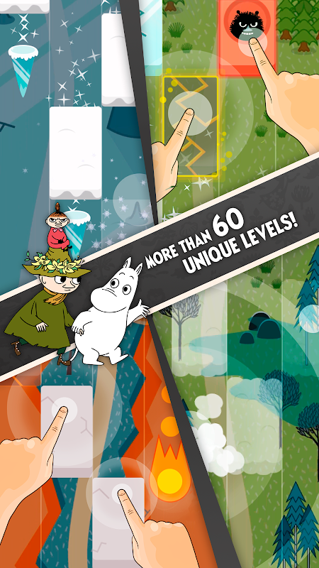 Kisah dongeng klasik ini bermula di Moominvalley dengan permainan kasual dan ketagihan. Ketuk jubin seperti bermain piano. Tetapi jangan tertipu! Permainan menjadi semakin sukar semasa anda maju. Mudah dipelajari, sukar dikuasai.