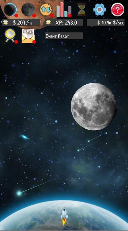 "Moon Base Tycoon" is a simulator idle game which gives you the opportunity of starting your own private space faring company. Your goal is to earn enough money so that you can build your own self-financed manned Moon base (and much more) and write the history. The game follows simple rules of idle money making. Will you make those right decisions at the right time? Analyze the system carefully and research more than 100 upgrades to help you become the most successful businessman in the world.