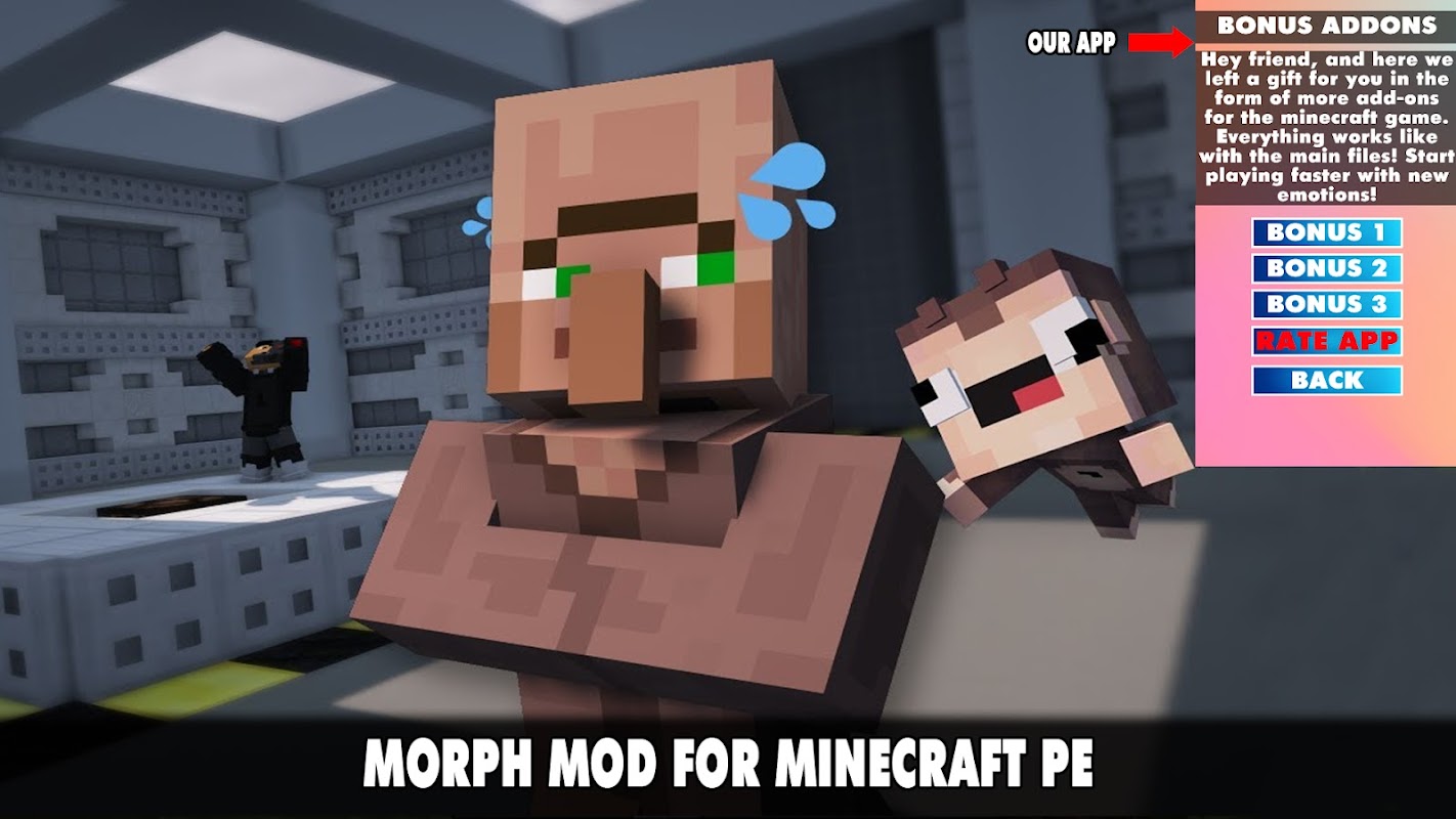 😀🤣If you are tired of the regular version of Minecraft and want to diversify the gameplay, you can install one of our modifications. This is what we talked about above. But this will not be an ordinary addition that adds fabulous animals, new locations or props, but a unique mods. You can download the always updated Morph Mod for Minecraft Pocket Edition 2022!🤣😀
