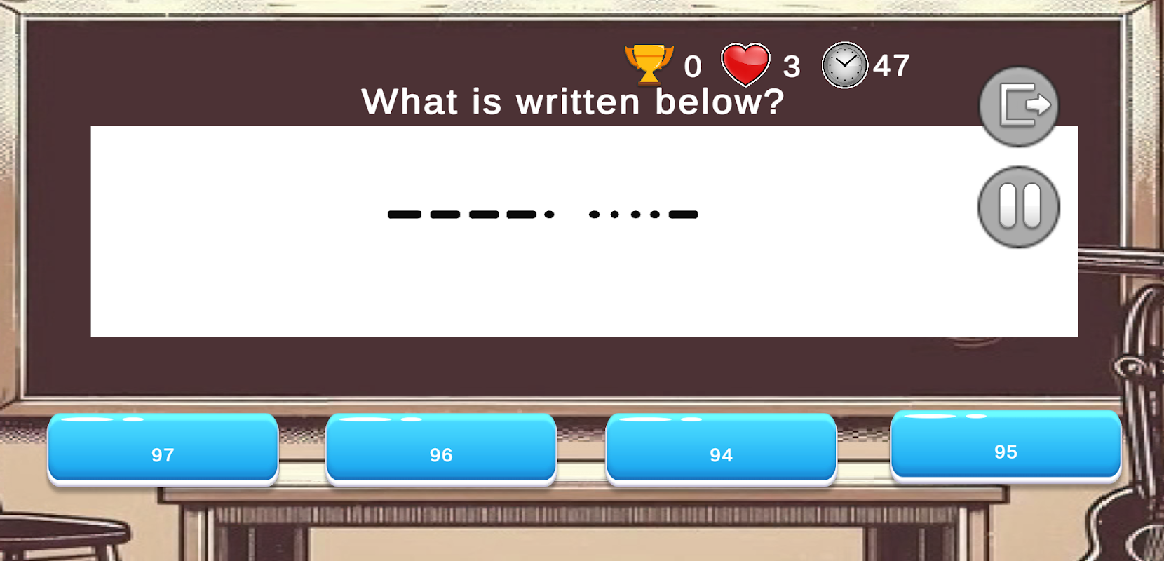 Bersenang-senang berlatih dan belajar alfabet dan angka. Selain itu, kami memiliki mode "Tulis" di mana Anda dapat menulis teks apa pun dan melihat tampilannya menggunakan kode Morse.