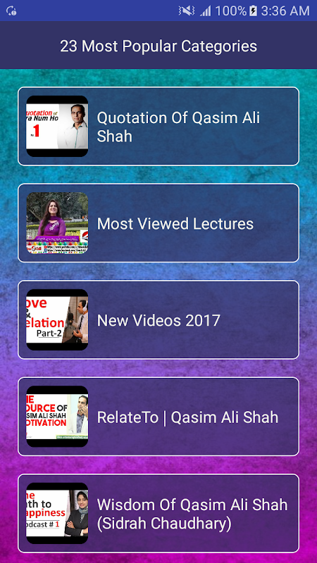 This application is for his fans and followers, you can watch all his latest videos lectures, talks, TV programs of Qasim Ali Shah in this application.