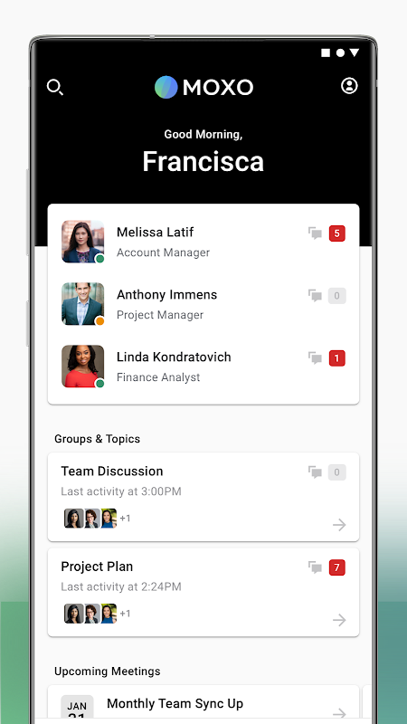 Anda boleh melakukan semuanya di Moxo dengan aliran kerja digital sehenti, pemesejan selamat, pertukaran dokumen, mesyuarat dalam talian, klip video, tandatangan digital dan banyak lagi.