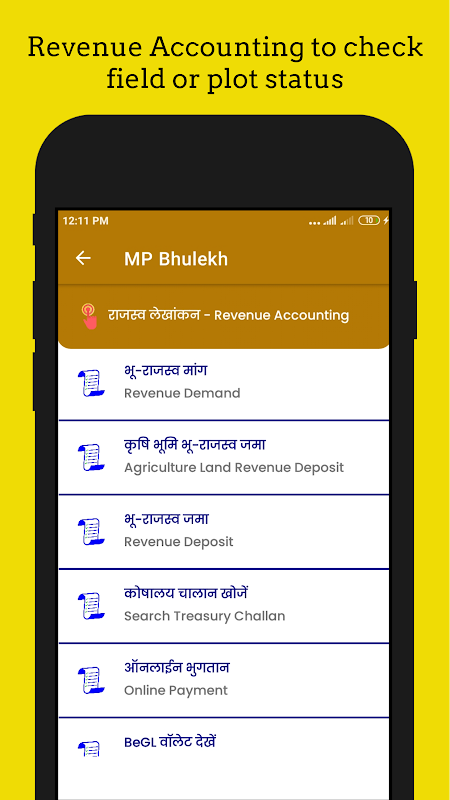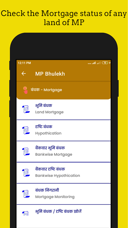 Aplikasi MP Bhulekh Khasra Khatauni adalah yang terbaik dan berguna untuk pemilik tanah untuk memastikan rekod tanah mereka dikemas kini. Dengan Menggunakan Aplikasi MP Bhulekh Khasra Khatauni, pengguna akan dapat menyemak tanah mereka Khasra dan Khatauni dalam talian tanpa mempunyai komputer riba atau PC. Aplikasi ini mengandungi semua maklumat tentang tanah negeri Madhya Pradesh seperti Bhulekh, Bhunaksha, Parimarjan (परिमार्जन), Perakaunan Hasil (राजस्व लेखांकन), Gadai Janji (बंधक), Pematuhan Pesanan (आदेश अनुपालन) dan lain-lain. Jadi jika anda seorang ladang daripada negeri Madhya Pradesh maka aplikasi ini akan membantu anda menyemak rekod tanah anda dalam talian.