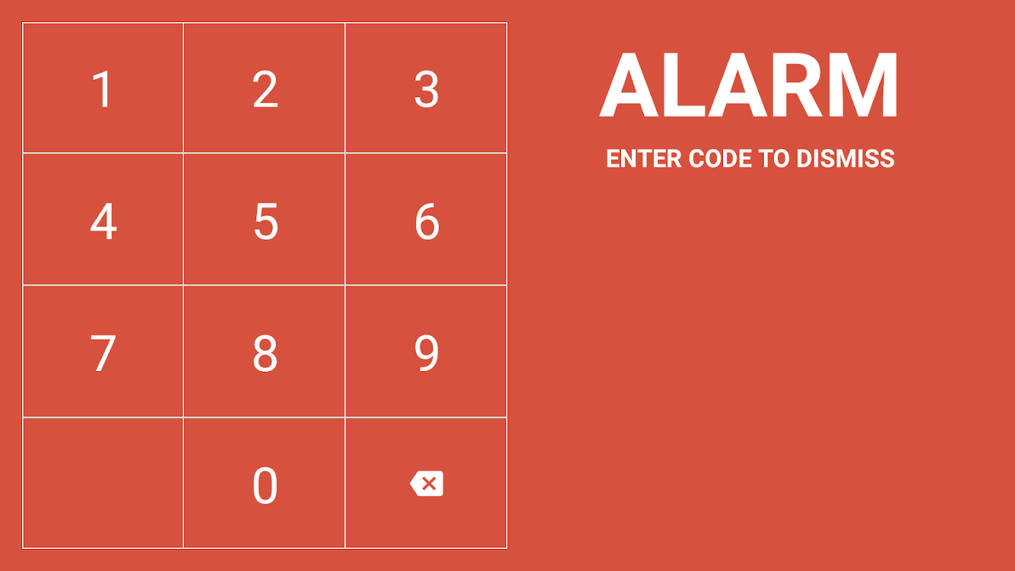 The alarm panel is designed to be used as a dedicated device which runs continuously in full-screen mode. The alarm panel is open source and available on GitHub. There is also a version that runs on a Raspberry Pi using Android Things