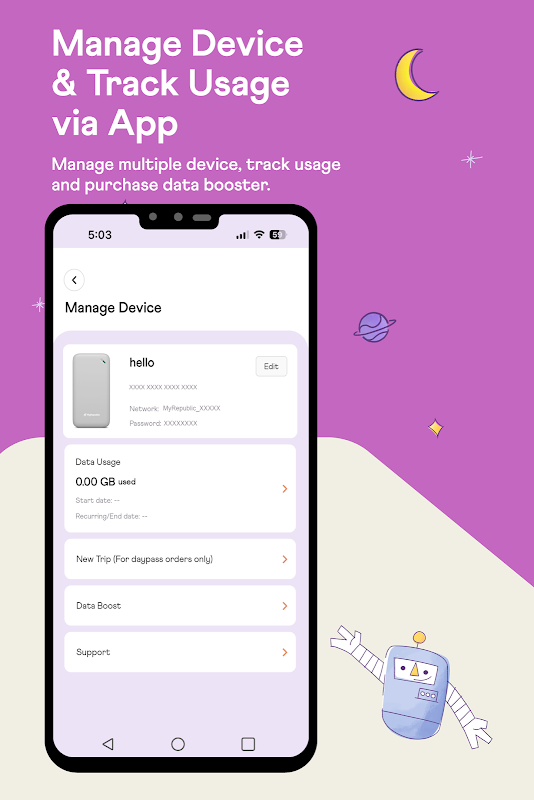 Semua rancangan kami disertakan dengan data tanpa had melebihi kuota pilihan anda, memastikan anda tidak terlepas sebarang saat. Urus pelan anda dengan mudah, jejak penggunaan anda* dan dapatkan sokongan pelanggan 24/7 melalui apl mesra pengguna kami.