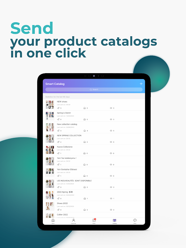 Penciptaan mudah katalog yang disasarkan boleh dengan mudah dikongsi secara persendirian atau awam dengan pelanggan anda oleh Apps (WhatsApp, Facebook, Messenger, WeChat dan banyak lagi). Dan menjadikannya mudah untuk mempromosikan model anda.