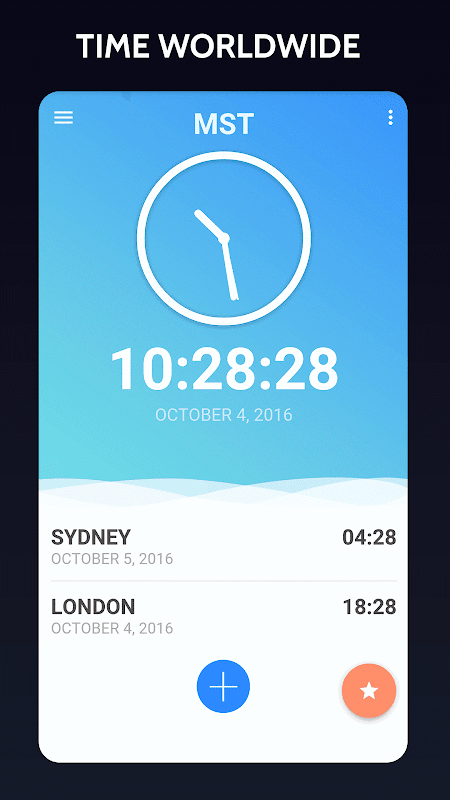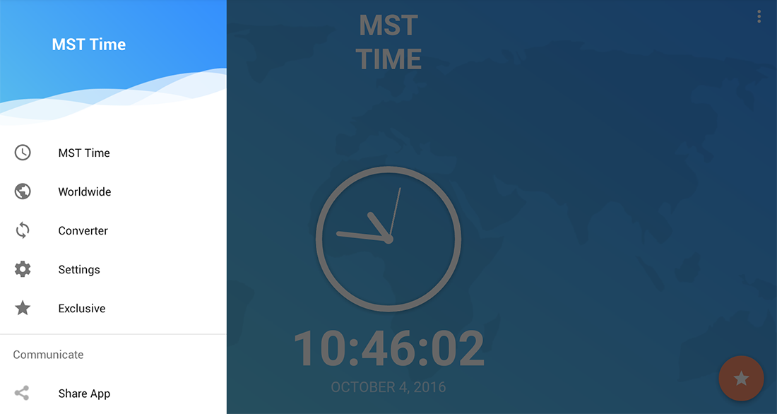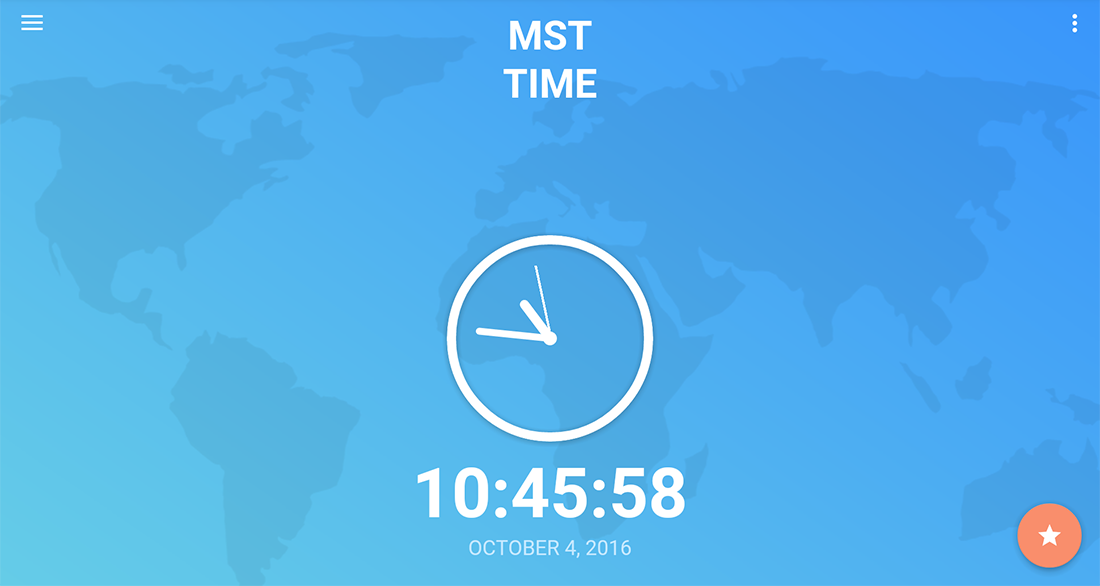 Add as many cities as you want and you will find the time worldwide, you can add cities and time zones, so you will find out the MST time now or the time of any other city in the world.