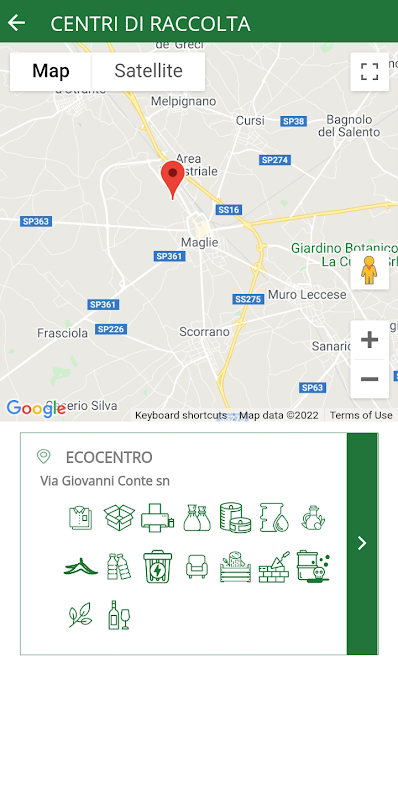 Aplikasi ini direka untuk menyediakan rakyat dengan sokongan yang berguna untuk kelakuan yang betul dari pintu ke pintu pengumpulan sisa berasingan di perbandaran Maglie.