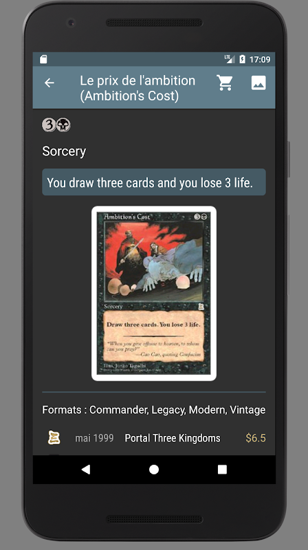 Maklumat mengenai permohonan ini mengenai Magic: The Gathering, teks dan grafik, adalah dilindungi oleh hak cipta Wizards of the Coast. Permohonan ini tidak dihasilkan, disokong atau berkaitan dengan Wizards of the Coast.