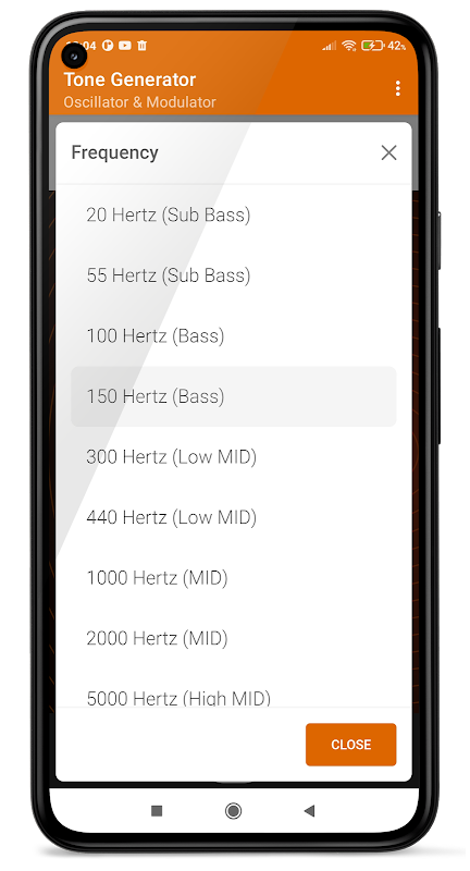 Penjana nada ringkas dalam telefon pintar anda. Julat frekuensi dari 1 hingga 20.000 Hz