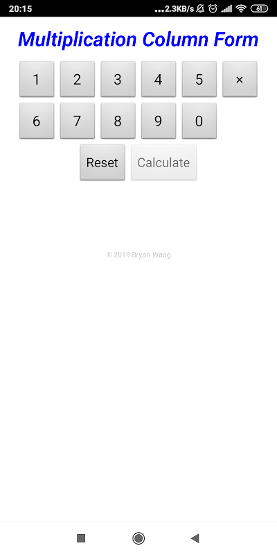 Aplikasi ini menunjukkan borang lajur untuk pendaraban nombor keseluruhan.