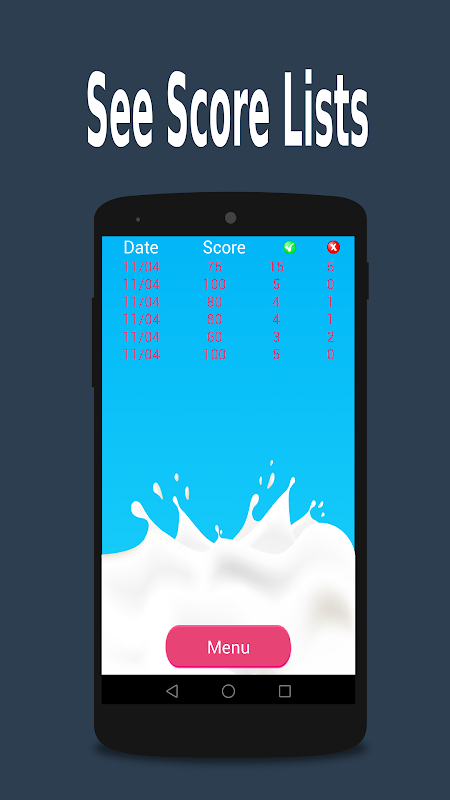 You can find your scores in this section, this app save your datas and correct answer, wrong answer and total questions.