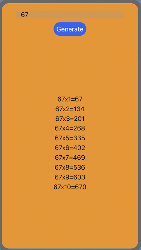When the app is opened you have to click on start and then you have to enter any number you want to find the table of multiplication of it and then you have to click on generate so the table of multiplication will be presented on the screen within a second.