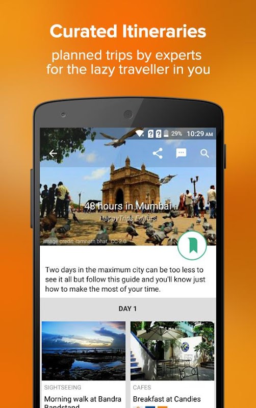 Explore Mumbai, the capital of Maharashtra, with the Mumbai Travel Guide app by Happytrips. Curated by experts, the app will be a perfect travel companion to get all information on the go. It works offline as well, with interactive offline maps. From Juhu Beach, Mumbai Chowpatty, Versova Beach, Mount Mary Church, and Haji Ali to the museums preserving cultural heritage of the place such as Jehangir Art Gallery, Mani Bhavan Museum and Nehru Planetarium, it covers everything! Mumbai travel guide covers the best hotels, restaurants, places to visit and shopping experiences with reviews from around the world. The content is complemented with highly useful interactive maps & beautiful photos. Coupled with offline content & offline maps you are sure to get the best from this app—be it a historical sightseeing tour or a romantic honeymoon or a shopping extravaganza.