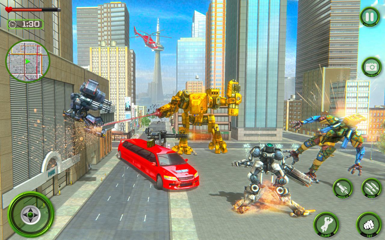 This is a monster war where you have to shoot and kill terrorists and killers. This is a twist in lethal robot shooting games where robot fight and robot racing are simultaneously incorporated in the police chase simulator game. You can choose to drive limousine or convert into a futuristic war robot. The robot design of the robot man is extremely unique and also the limo used to move towards target point is also another extreme lovely experience.