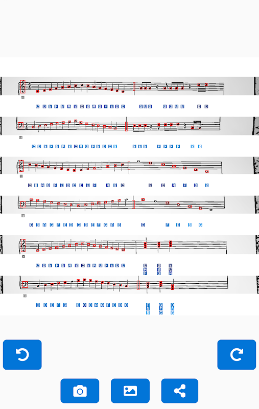 · Hasil yang dipaparkan oleh aplikasi ini hanyalah nama nota. Simbol muzik yang tidak berkaitan dengan jenis nota atau nama nota tidak boleh diiktiraf.