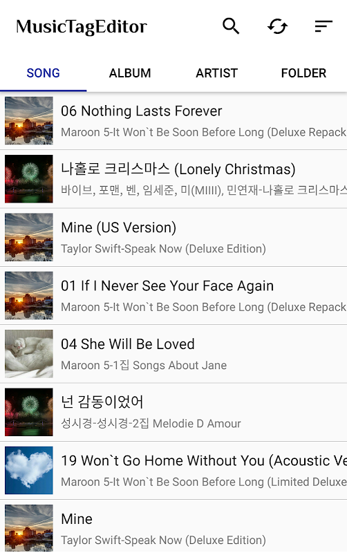 - Album, Artis, menukar maklumat tag daripada sebuah lagu