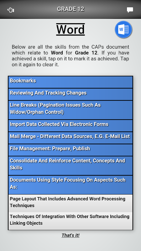 All the skills for each app in Computer Applications Technology. CAPS-Compliant