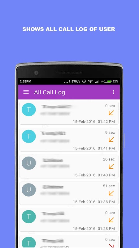 My Call Report keep your call logs record and create usefull report of call easily to track your call activity.List all data category wise for ease of access.There are many other features included to manage your call logs easily and efficiently.