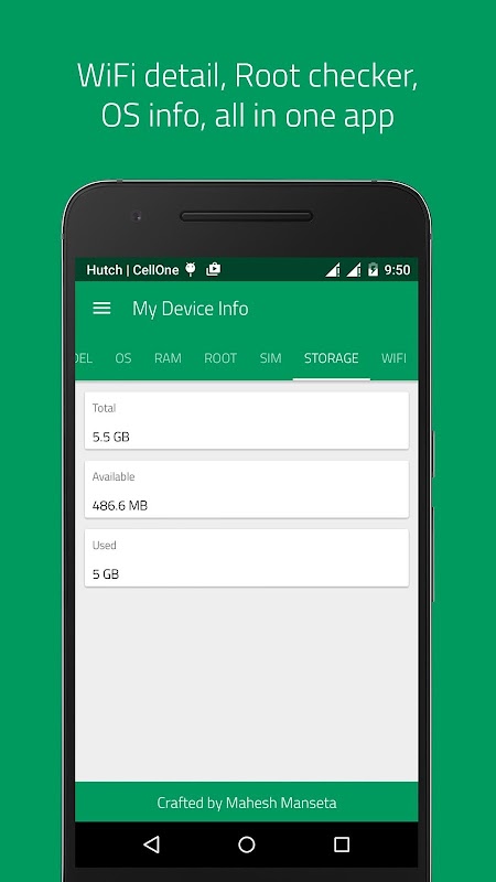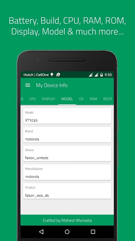 Ini membantu anda untuk menunjukkan spesifikasi dan konfigurasi lengkap Telefon Pintar Android anda, termasuk Perkakasan (HW) dan juga Perisian Sistem Operasi Android (OS).