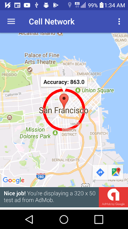 My location with Cell Network, You do not need to use GPS and Wifi.