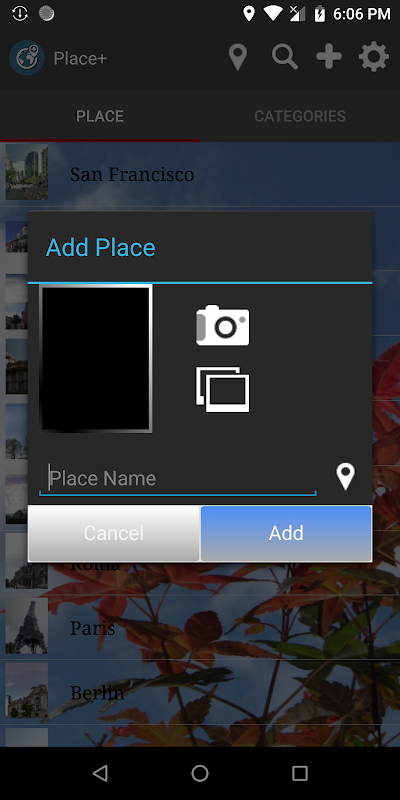 Tempat + app membolehkan anda merakam tempat-tempat yang anda lawati dan berkongsi dengan rakan-rakan bila-bila masa mana-mana sahaja. Hanya satu sentuhan, anda boleh checkin dan berkongsi tempat ke Facebook, Twitter, Email dan album gambar sekarang.