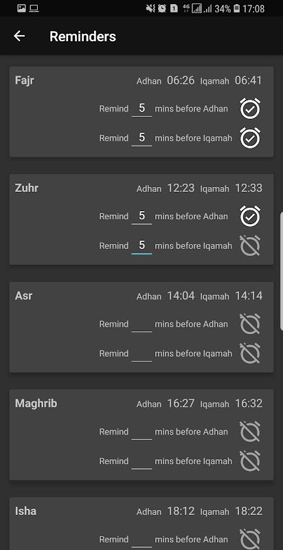 Pengguna mudah alih boleh menetapkan peringatan automatik sebelum Adzan atau Iqamah untuk sampai tepat pada masanya dari rumah atau pejabat. Bangun untuk solat subuh dengan penggera bangun Subuh. Pastikan telefon bimbit anda senyap semasa solat dengan ciri Senyap untuk membisukan pembesar suara telefon bimbit anda secara automatik dari waktu Adzan hingga 15 minit atau lebih selepas Iqamah.