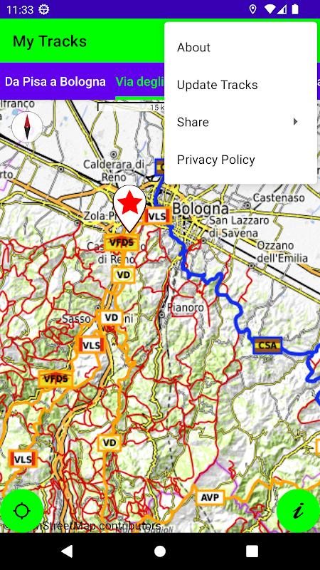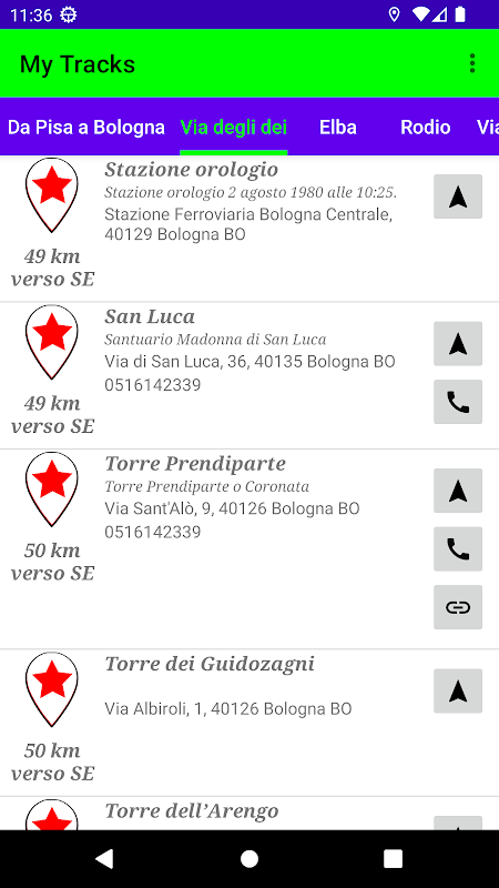 Dalam apl saya ini, saya mengumpul laluan saya (=Tracks) dengan petunjuk tempat menarik yang bersilang (=Poi).