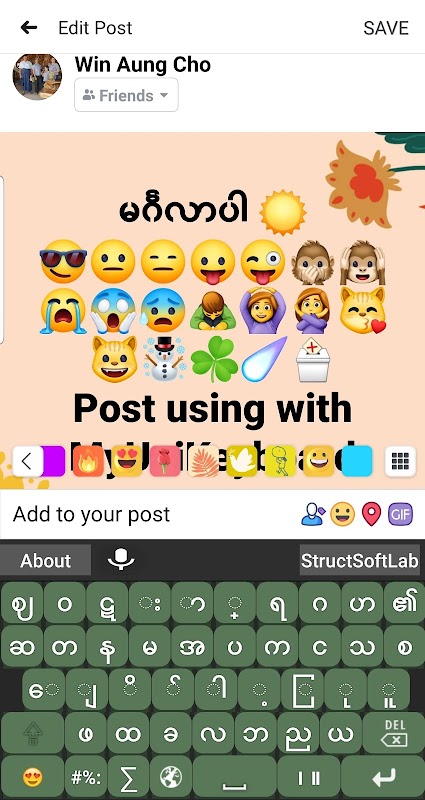 Papan kekunci lembut yang kuat membantu anda menaip teks Myanmar dan Shan.