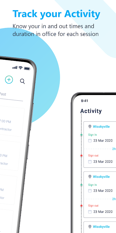 Aplikasi Visitly saya untuk pekerja untuk masuk / keluar dari tempat kerja dengan cepat dan mudah dan membolehkan menguruskan pengunjung masa lalu dan yang akan datang, menguruskan jemputan dan akses ke direktori syarikat. Memberi kesan yang baik kepada tetamu dan pelawat anda dan menyimpan maklumat mereka dengan mudah