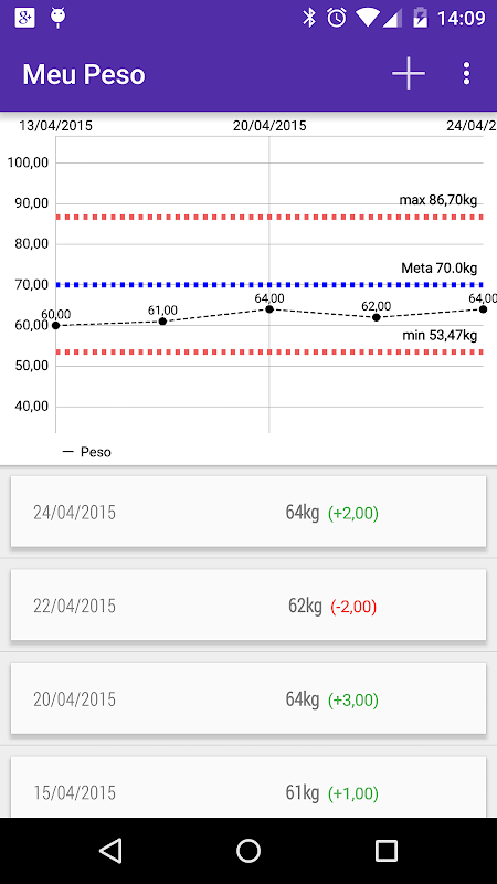 With the application it is possible to track your weight, set your goal and also help you maintain your ideal weight.