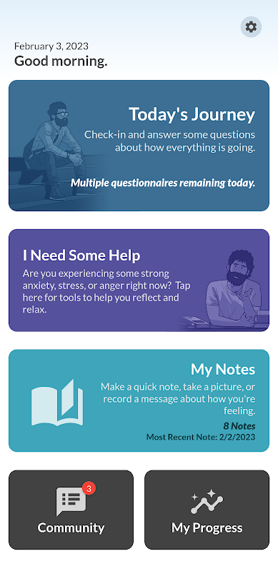 Aplikasi ini membantu individu yang pulih daripada kecederaan otak menjawab penilaian berkala, mengikuti campur tangan, dan mencatat perasaan mereka dalam perjalanan mereka. Ini bermakna individu itu tidak perlu mengingati pelbagai peristiwa dan episod antara lawatan dengan profesional penjagaan kesihatan mereka. Apabila mereka bertemu, semua data tersedia kepada profesional penjagaan kesihatan untuk membantu memaklumkan mereka semasa mereka mempertimbangkan pelbagai pilihan rawatan.