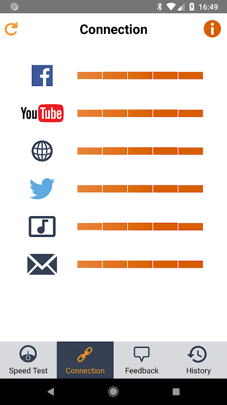 Test connection quality to a range of popular services such as YouTube and Facebook.