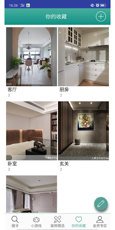 站上的图片、文章、視頻,可以收藏到内建文件夹,建立你的装修小图库,方便与设计师沟通居家风格