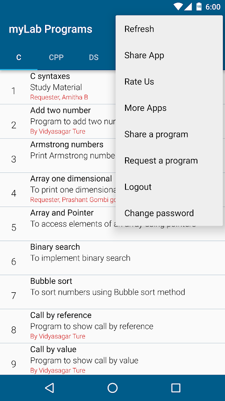 This app contains C, C++, Java, Unix Programs for computer students of school, colleges