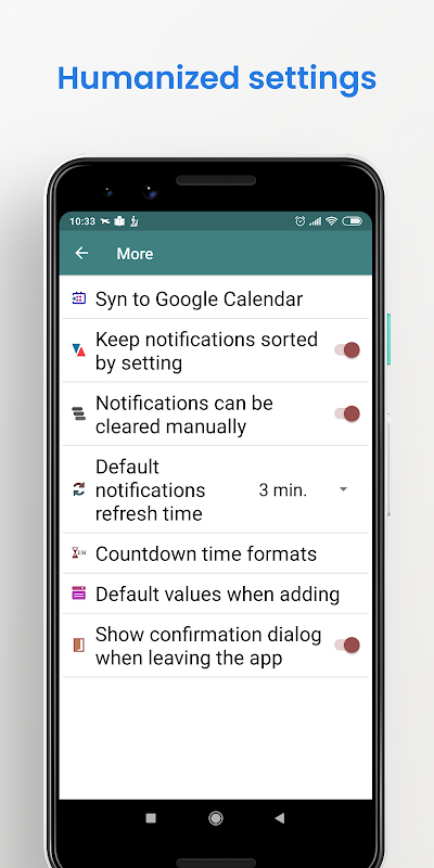 ★ Pemasa undur: Menetapkan tarikh sasaran dan tunjukkan maklumat.