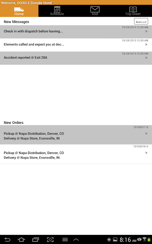 Seamless communication between driver and dispatcher including driver's daily schedules, load processing, and pre-trip inspection.
