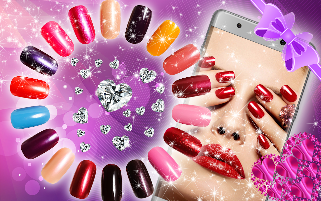 Download free Nail Polish Designs Art Salon, make manicure art and share your unique style with your friends! Post your nail art images to Facebook, Instagram or Twitter! Save photos to your phone gallery and you may also show your creation to a manicurist so you can transfer your nail decoration ideas to your own nails. Express your creativity! Be inspired! Be trendy!