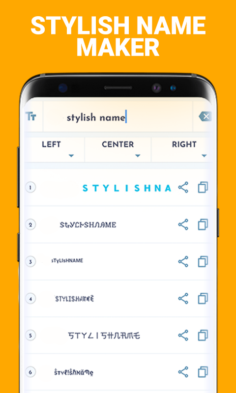 Nowadays, every pro player wants a unique and stylish name, nickname, or username for games. So we made this “Name Style App: Text & Symbols”, which is fully loaded with name designs to create impressive, unique, and stylish name art with cool text and symbols on your phone for any game. This stylish name creator: name maker app is easy to use. Just choose the nickname template for any name generator, put in your nickname, and you will have cool fonts to choose from Name Style App and make a new stylish name for game. It's one of the best stylish name maker app. The free nickname generator can be used without any internet connection. Making gamer nicknames is completely free. You can use various cool font and symbols styles for making stylish names.