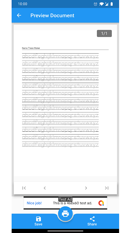 Aplikasi ini dapat menghasilkan lembaran kerja yang boleh dicetak untuk anak-anak anda. Anda boleh menyesuaikan huruf, nama atau apa sahaja yang anda mahu jejak anak-anak anda.